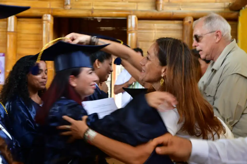 El evento tuvo lugar en nuestra Casa de Emprendimiento de la Mujer en Atacames. Al evento acudió parte de la directiva de Fundación Raíz Ecuador – CAEMBA representada por Manuel Pallares, Director Ejecutivo y Cristina Latorre, Directora de CAEMBA. Asimismo, acudió el alcalde de Atacames, Fredy Saldarriaga y su esposa, Elicenia Vélez; Guisella Reyna, representante del SECAP en Esmeraldas y familiares de las graduadas.