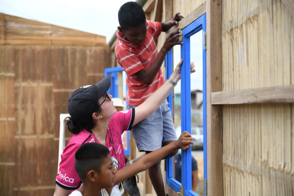 Los ex alumnos del Colegio Americano de Quito donaron una casa en memoria de sus compañeros que perdieron la vida recientemente. Laura Zoila Cedeño Mora y sus 5 hijos, tres de ellos varones de 14, 12 y 7 años de edad y 2 niñas de 9 años y de 4 meses de edad, recibieron una casa CAEMBA en el mismo barrio: 18 de febrero.