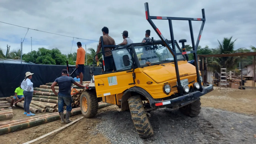 Luego de 2 meses de intenso trabajo en la finca y planta de producción industrial de bambú CAEMBA, situada en La Concordia, donde se realizó el proceso integral del bambú: cosecha; tratamiento e inmunización; armado de paneles de paredes y pisos; entre los principales procesos.