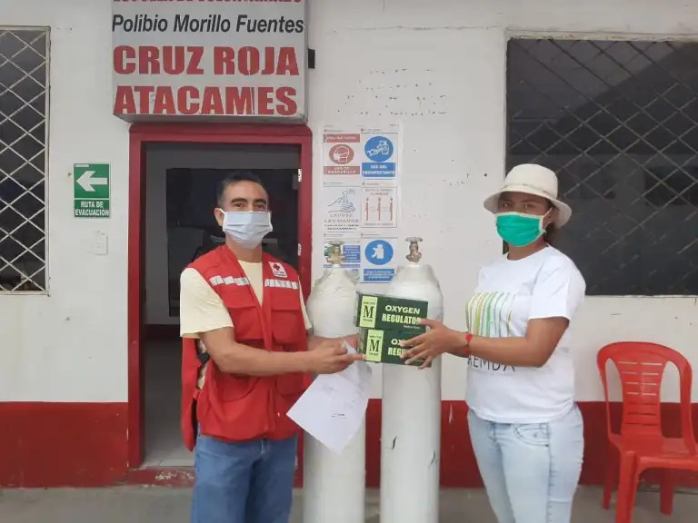 En primer lugar se entregaron dos tanques de oxígeno a la Cruz Roja del cantón Atacames. Posteriormente, se entregaron tanques a los cinco centros de salud del cantón, situados en San Carlos, Atacames, Unión de Atacames, Súa y Tonchigüe.
