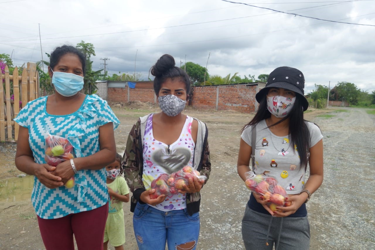 El 18 de enero de 2021, recibimos una donación anónima de un productor de frutas ecuatoriano. Aquel día entregamos manzanas de la marca “Ana” a 72 familias de Nueva Esperanza, Atacames y del Barrio Rulon en Tonsupa.