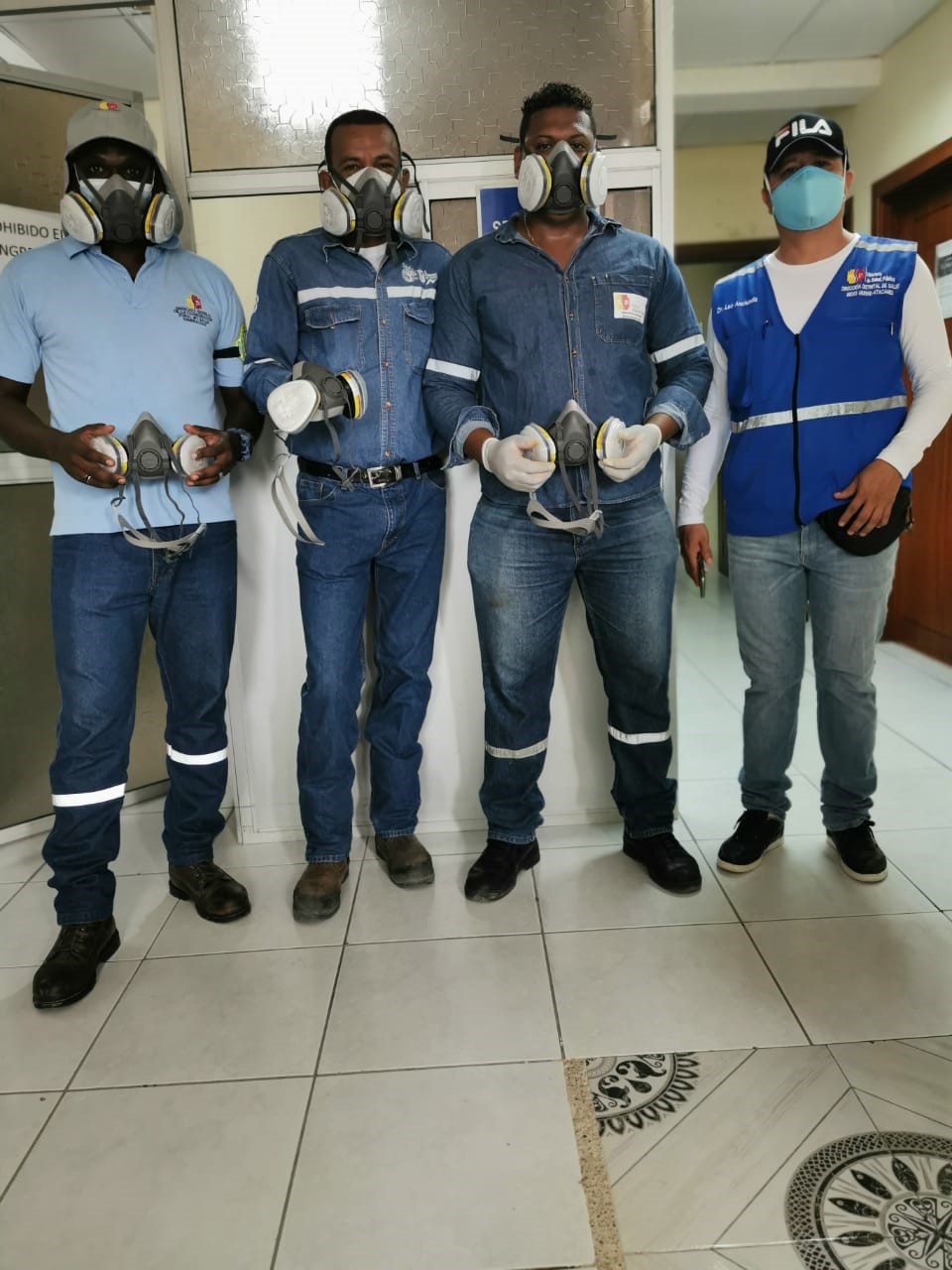 Para realizar todo este trabajo, el MSP no contaba con máscaras especiales para trabajar en la nebulización espacial. Por ello, desde CAEMBA donamos varias máscaras para que el MSP pueda trabajar adecuadamente.