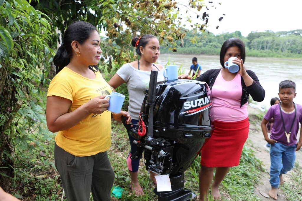El viernes 24 de septiembre se viajó a territorio Siekopai para entregar una canoa y un motor fuera de borda a la asociación de Mujeres Siekopai de Wai’ya (ASOPROASIENW) en el marco del proyecto de desarrollo de Bioemprendimientos con identidad cultural Siona y Siekopai.