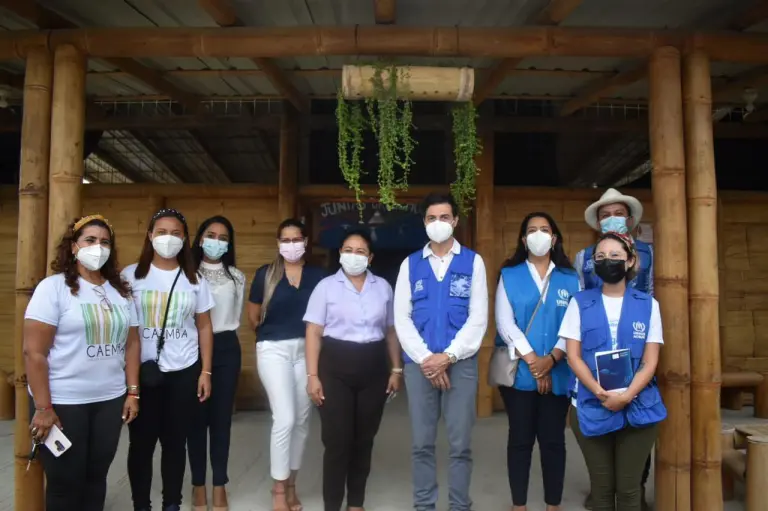 On Tuesday, July 27, 2021, the inauguration of the «Beauty in Bamboo» Multifunctional Center took place in the Nueva Esperanza neighborhood, Atacames. Our field technicians, Maritza Orellana and Marjorie Guerrero, welcomed representatives from the United Nations Refugee Agency (UNHCR) to inaugurate this infrastructure and tour the neighborhood to learn about the work we do at Caemba.