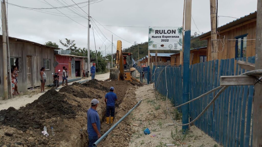 Durante la semana del 12 al 16 de septiembre de 2022, la Empresa Pública Mancomunada de Agua Potable y Saneamiento Esmeraldas (EP-MAPSE), está instalando la nueva tubería para el agua potable que servirá para 35 acometidas domiciliarias en los dos nuevos barrios RULON-CAEMBA, construidos en junio pasado en Atacames. Fundación Raíz Ecuador – CAEMBA adquirió