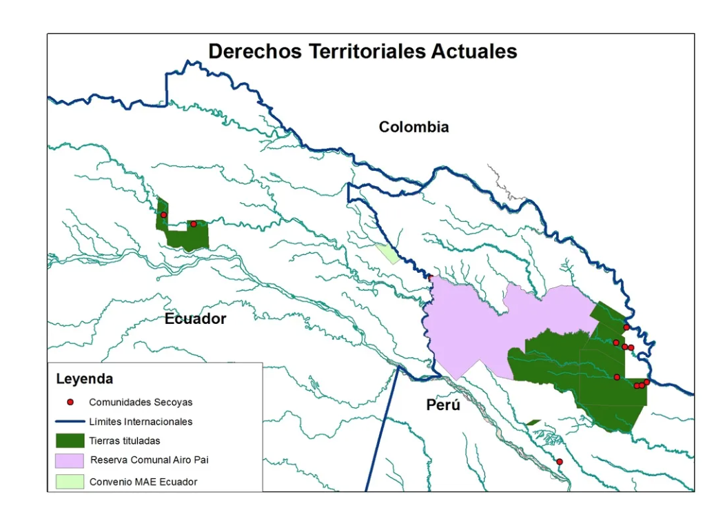 Varias comunidades Secoya viven a lo largo de la frontera entre Ecuador y Perú. En 1990, Manuel Pallares y Pablo Yépez, miembros fundadores de Fundación Raíz- CAEMBA iniciaron un proyecto encaminado a la reunificación del pueblo Secoya dividido entre Ecuador y Perú, desde 1941, año en que se militarizó la frontera y el pueblo Secoya fue encerrado.